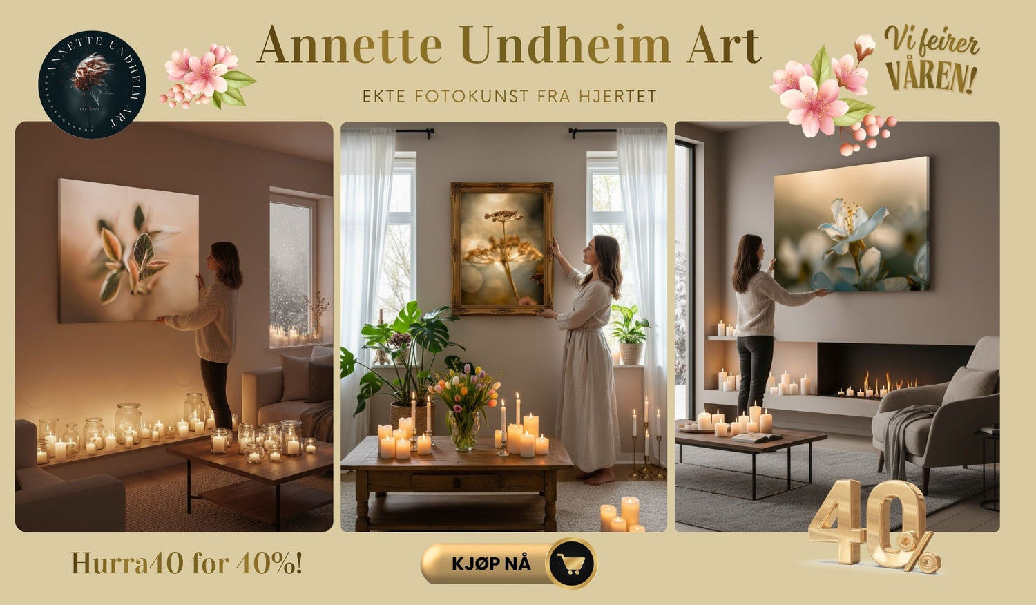 Velkommen til min butikk! Jeg er så glad for at du er innom her! Jeg heter Annette og selger min fotokunst gjennom Annette Undheim Art. Jeg tar alle bildene mine selv i mitt nærområde. Alle blomster, insekter og vekster er ekte, og kun fargejustert.