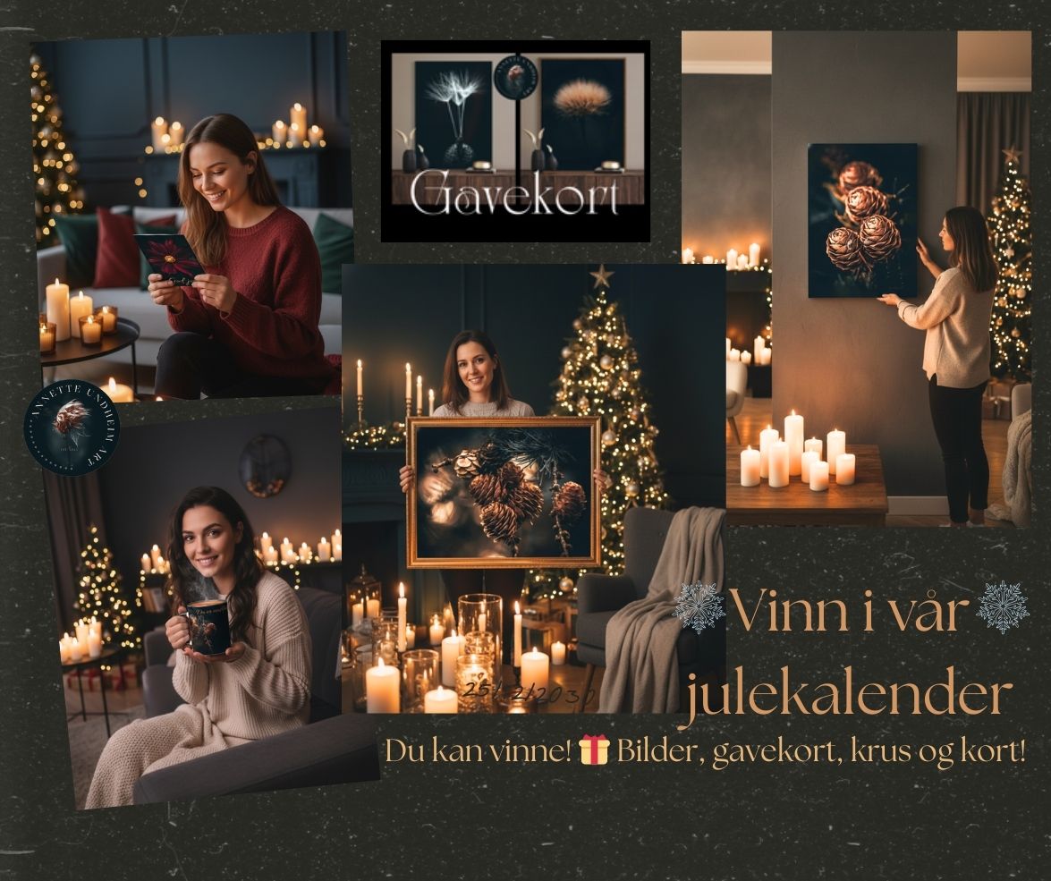 Meld på nyhetsbrev og vinn i vår julekalender! Du er automatisk med i trekning hver annen dag i desember på nyhetsbrev! 🌟 Du kan vinne flotte bilder, kort, gavekort og krus 🎁🎄🌟