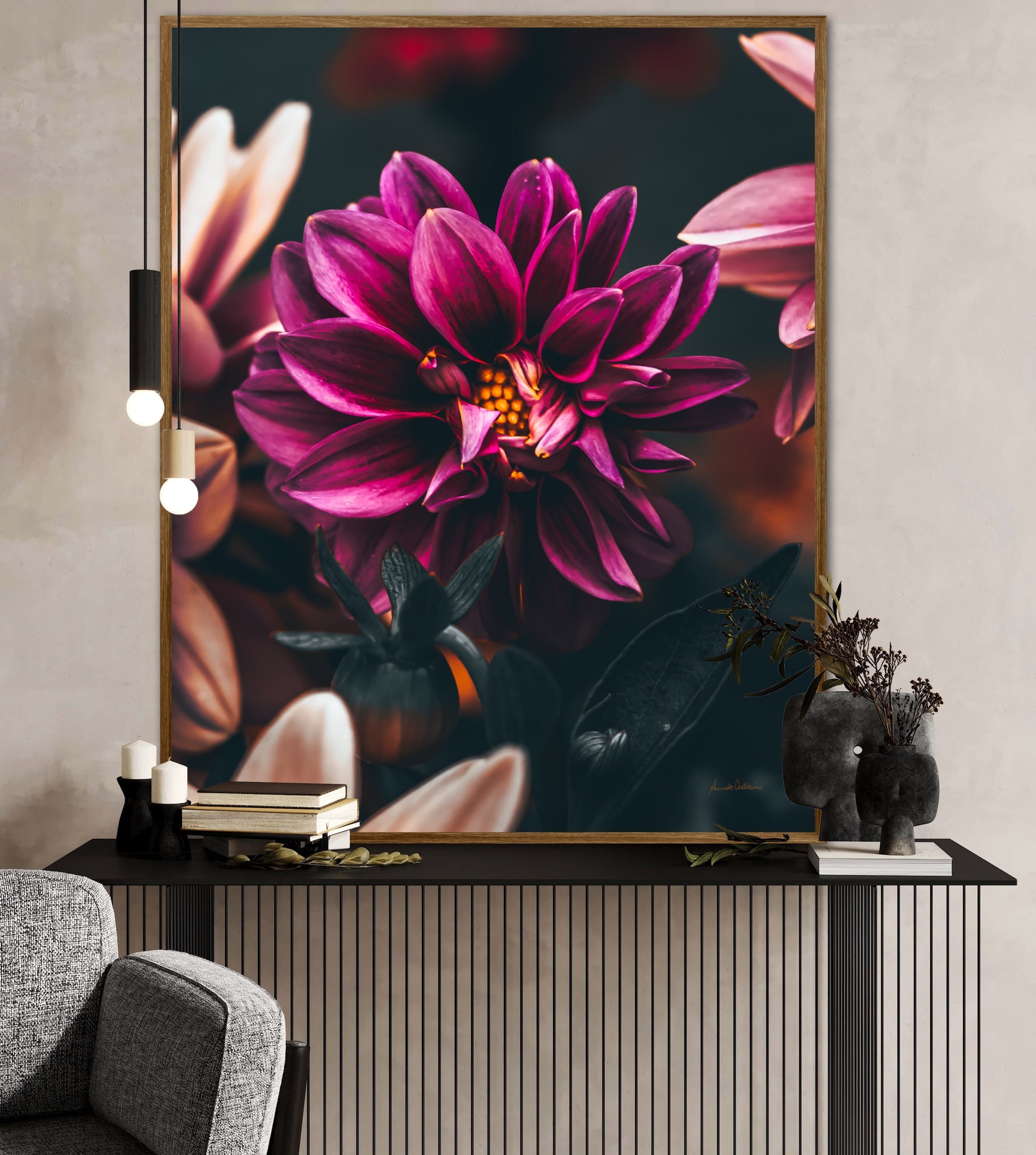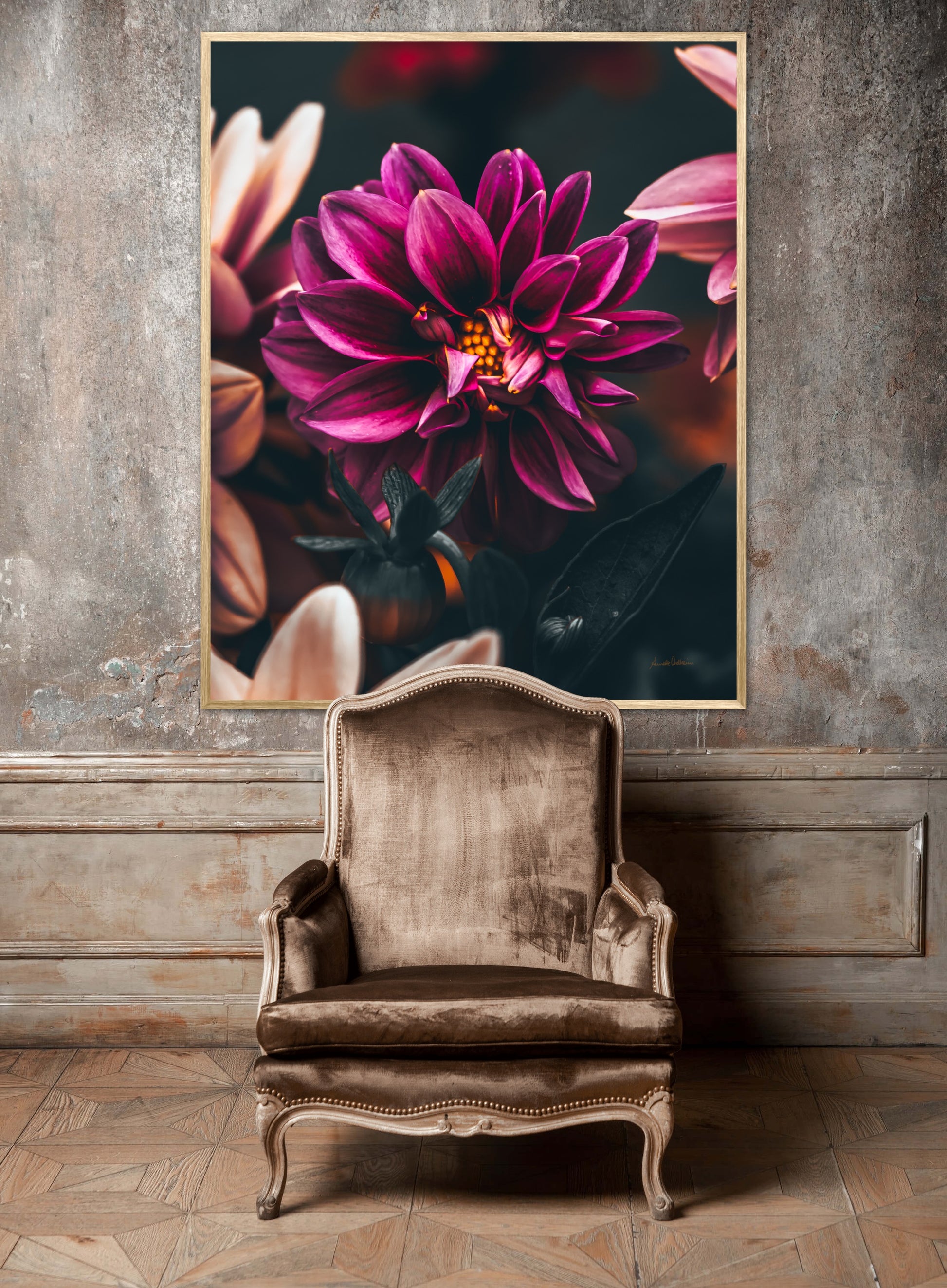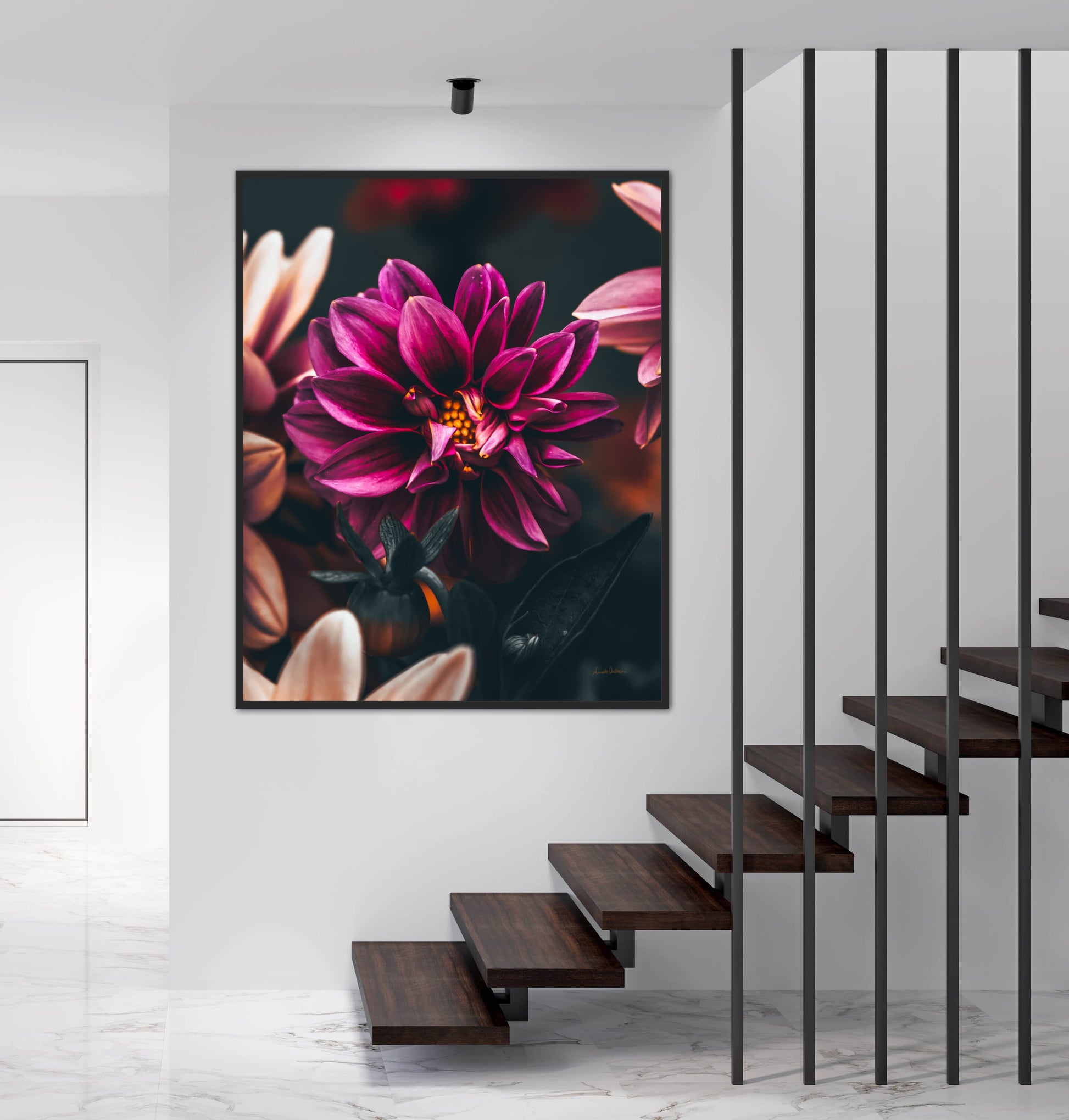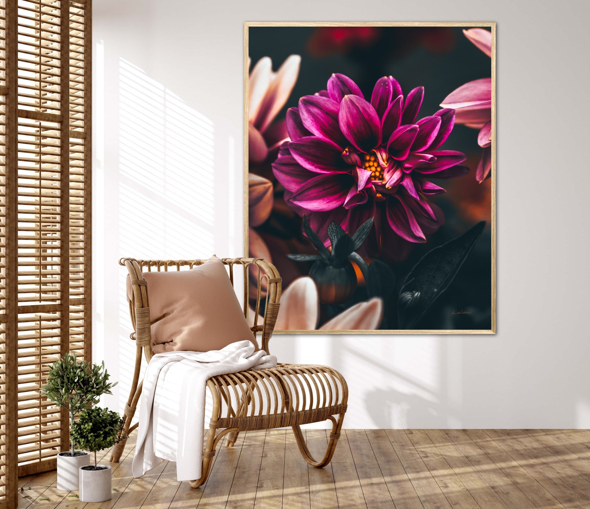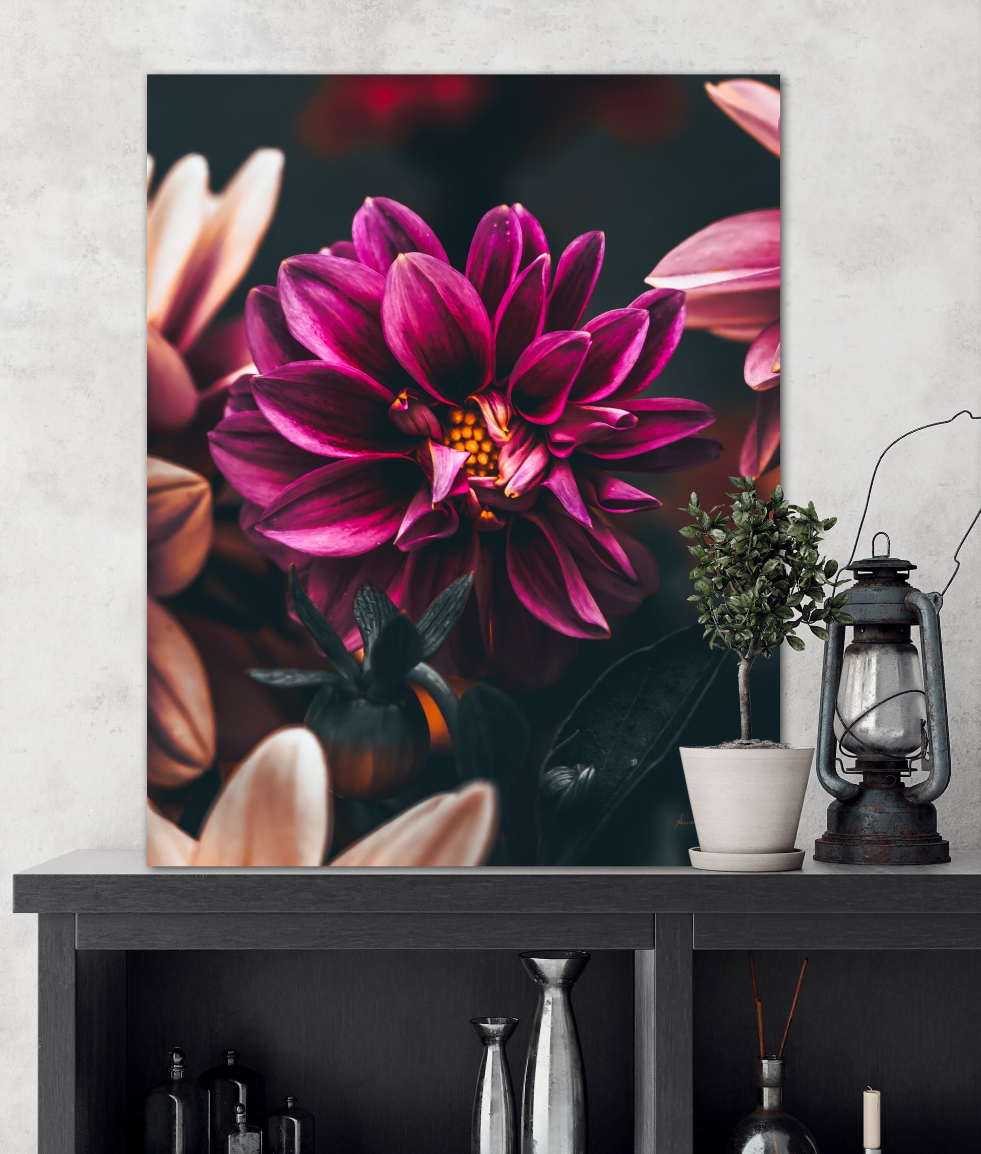 Nydelig vakker lilla Dahlia blomst med lysere blomster på kanten rundt. Få glede og sommer på veggen med dette vakre motivet.