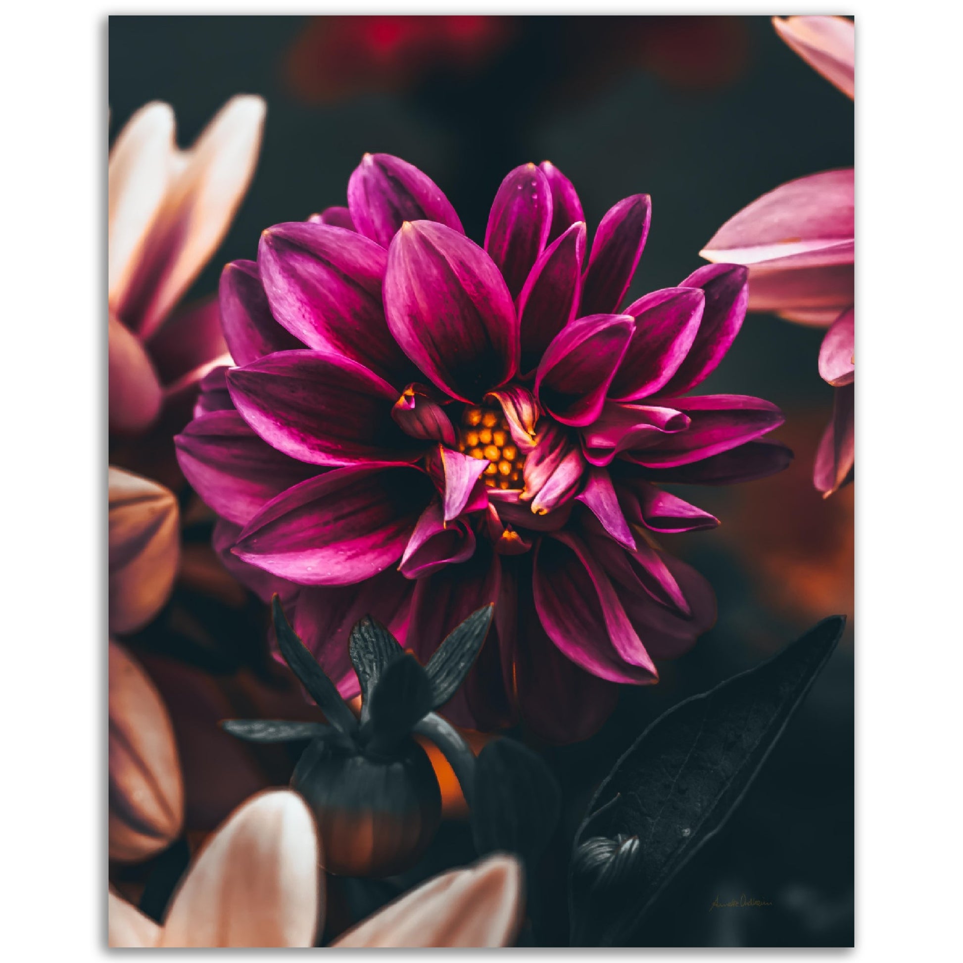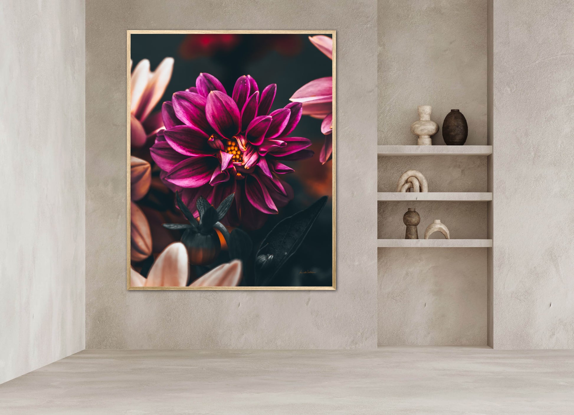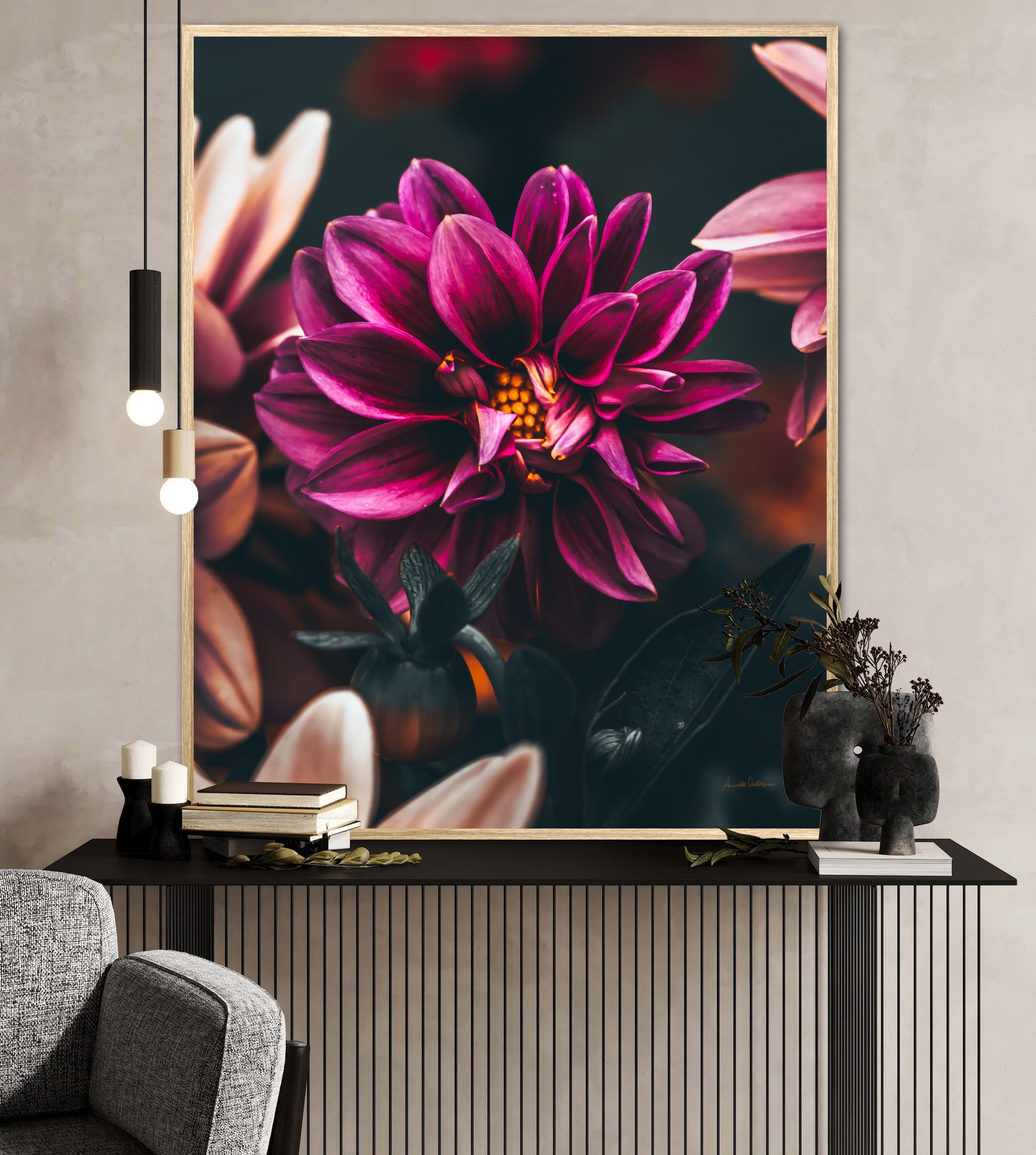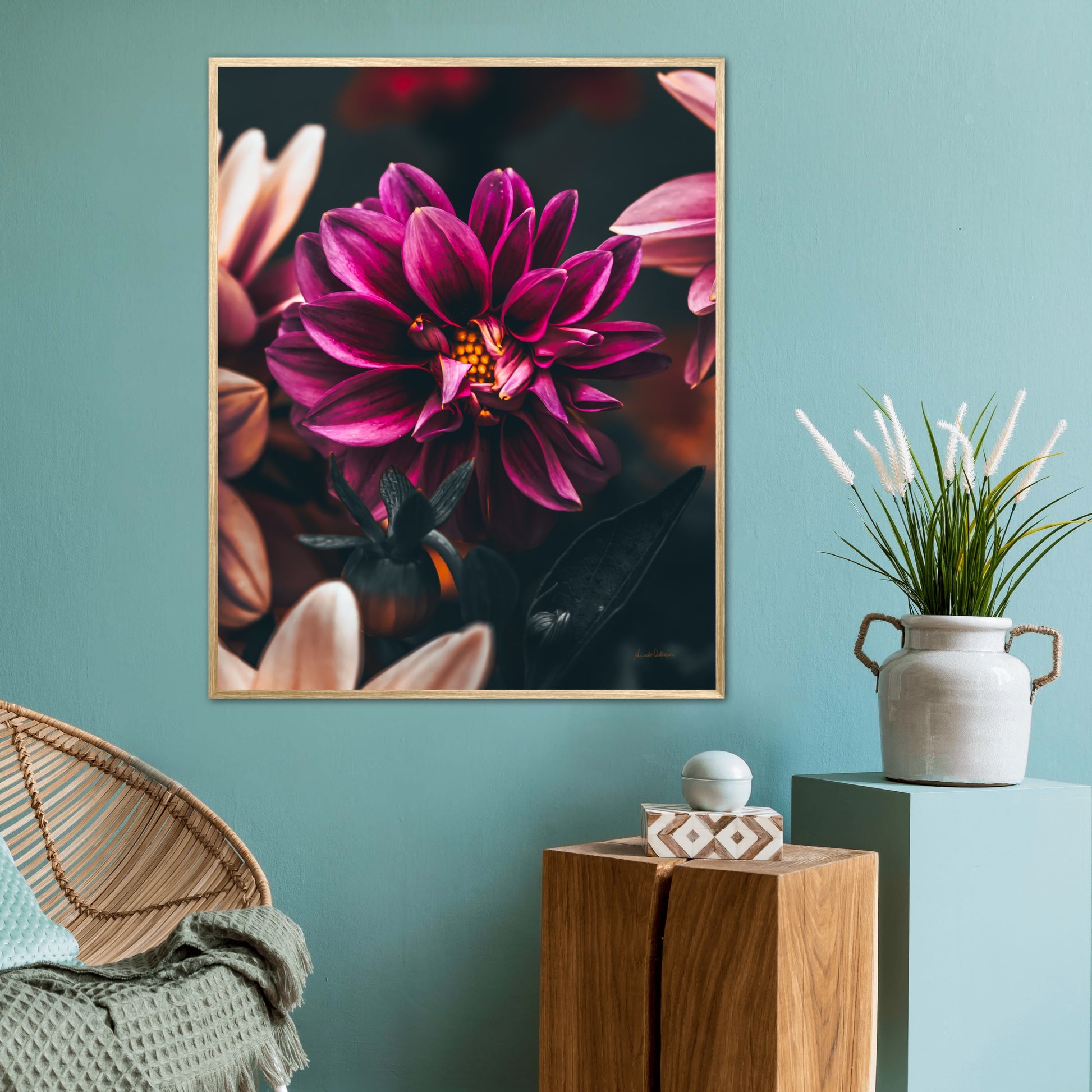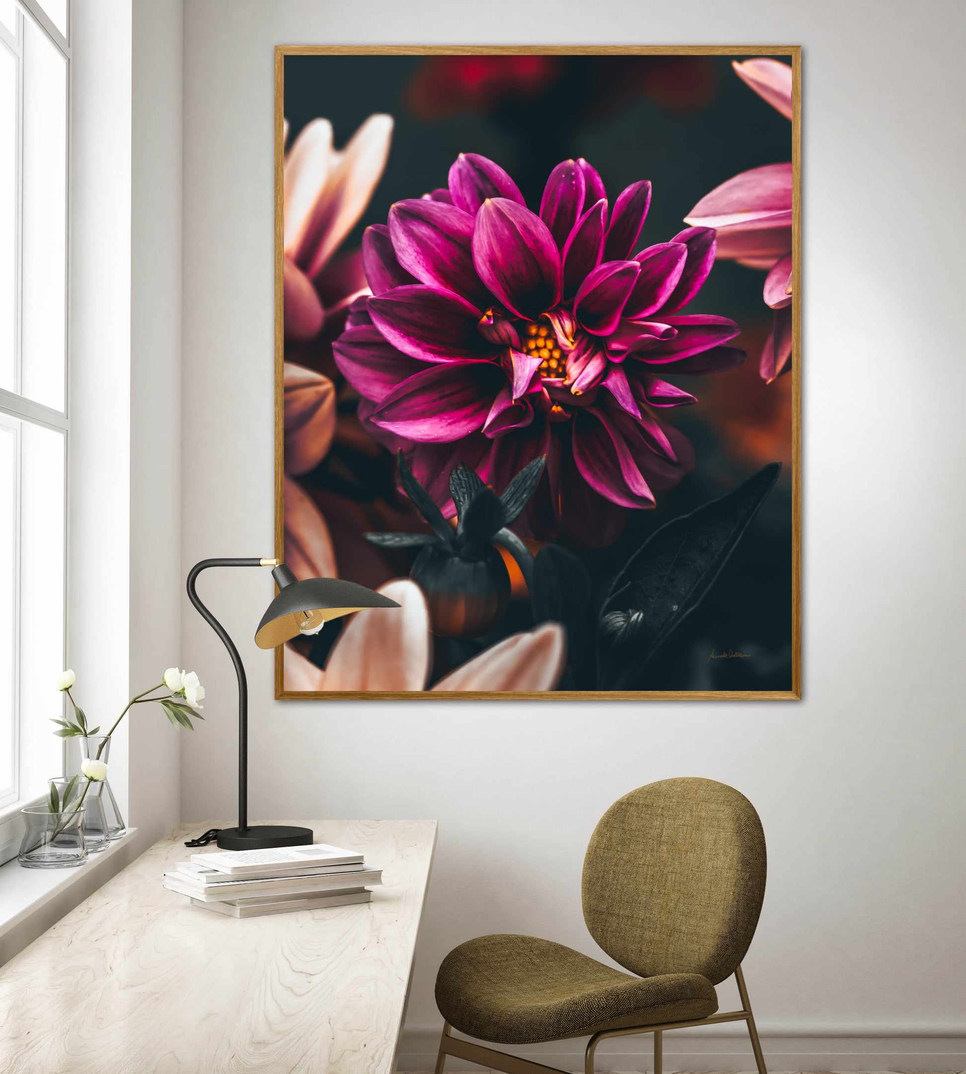 Nydelig vakker lilla Dahlia blomst med lysere blomster på kanten rundt. Få glede og sommer på veggen med dette vakre motivet.