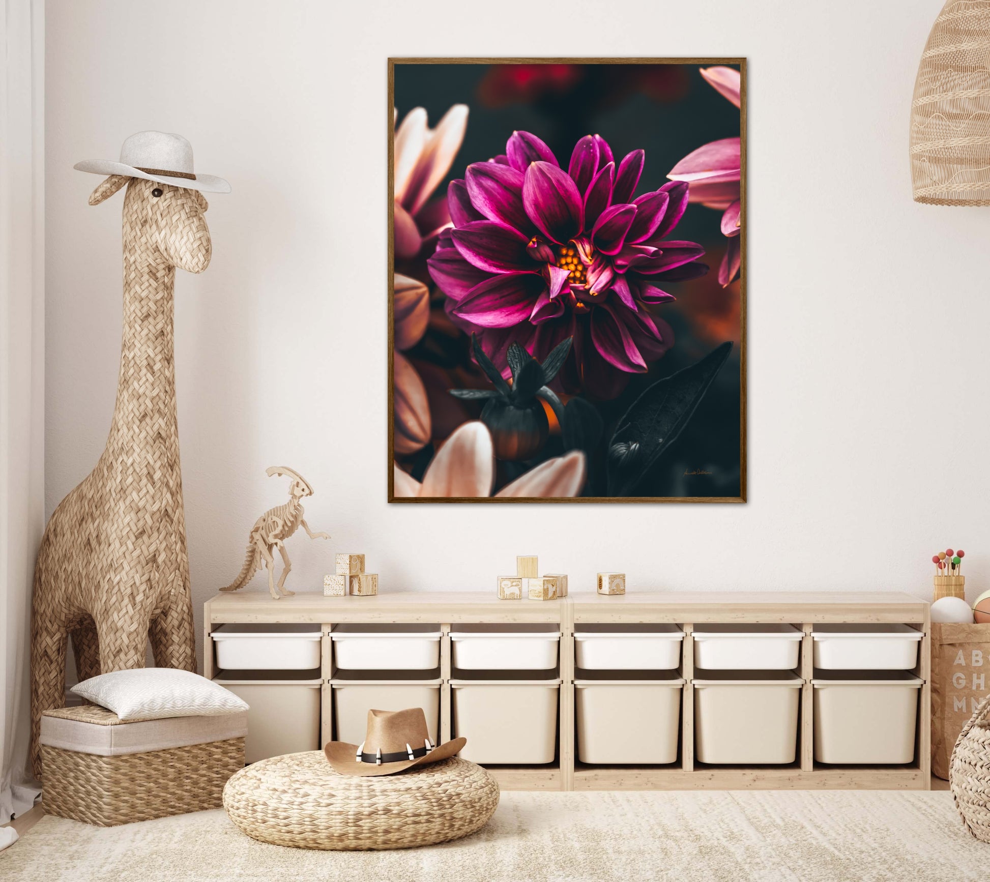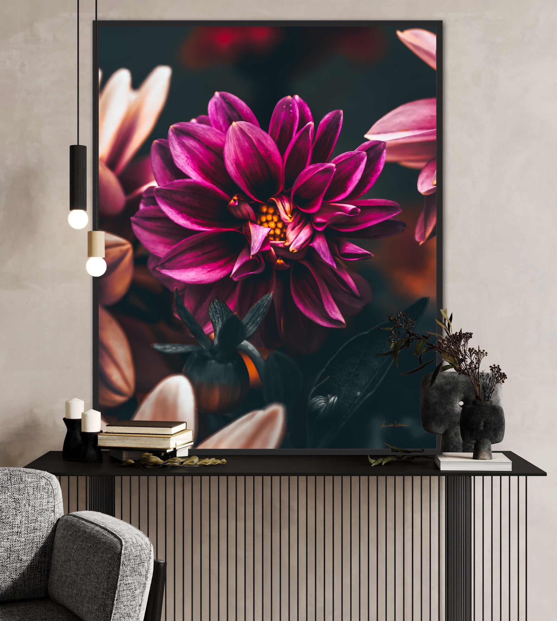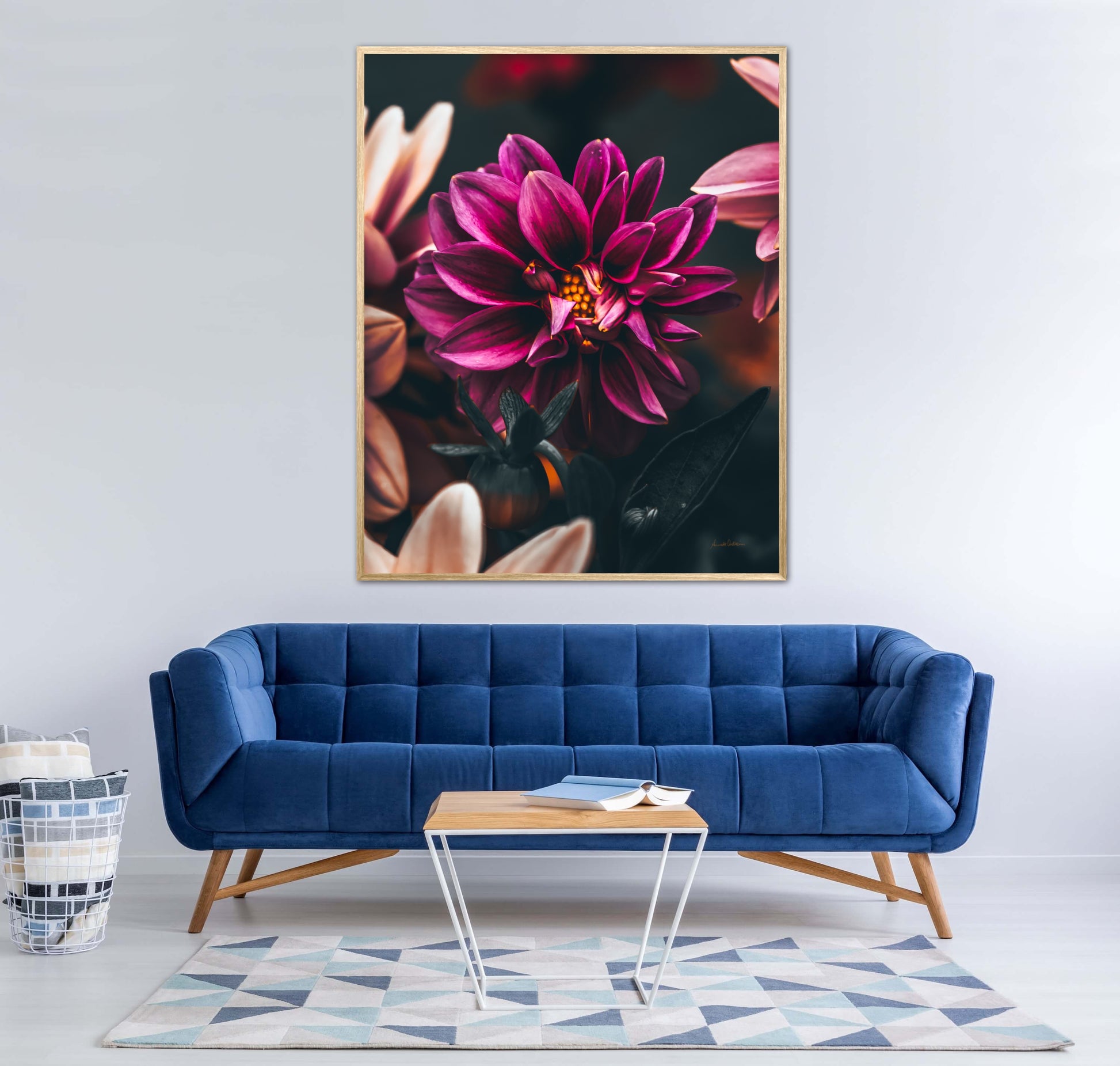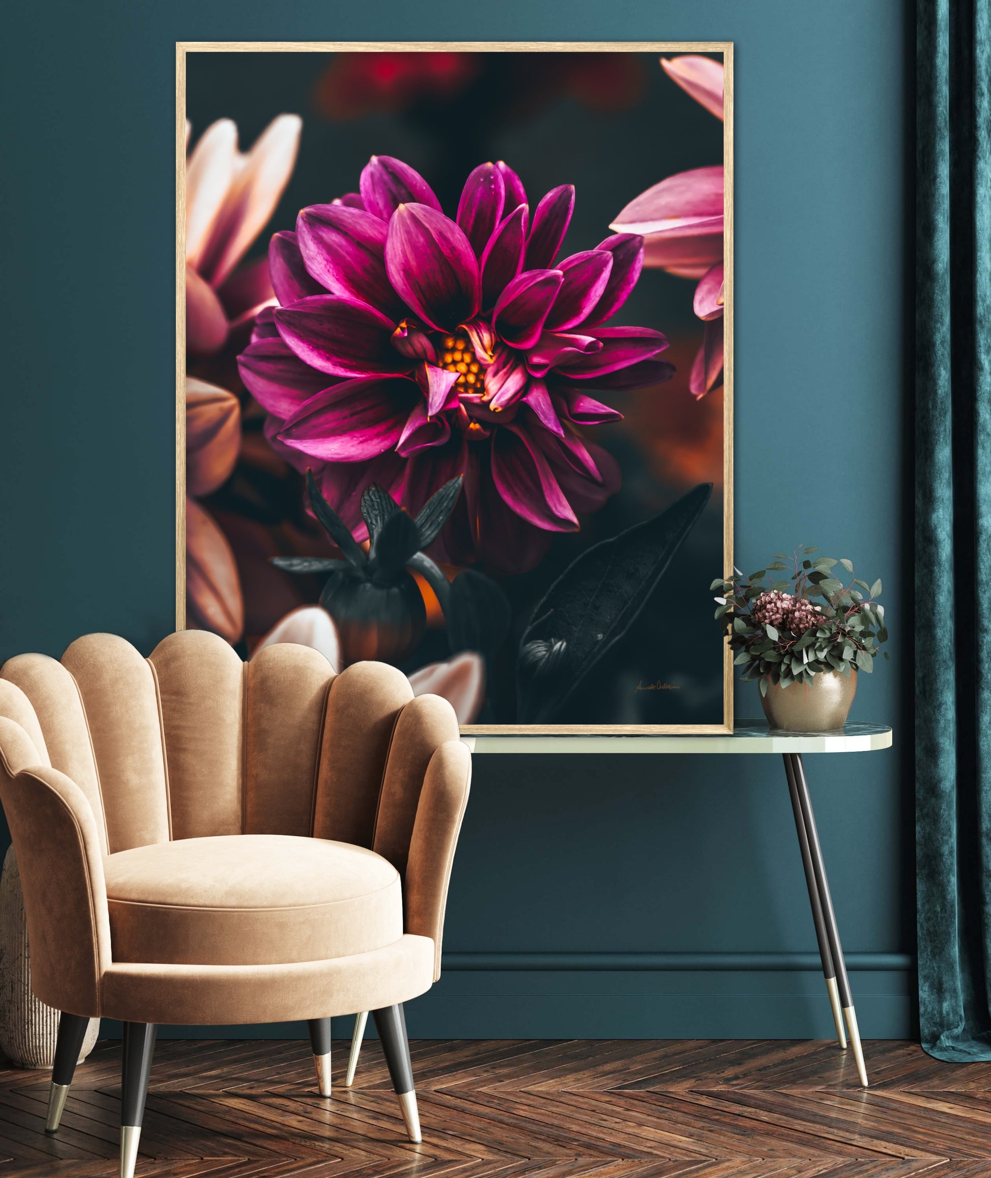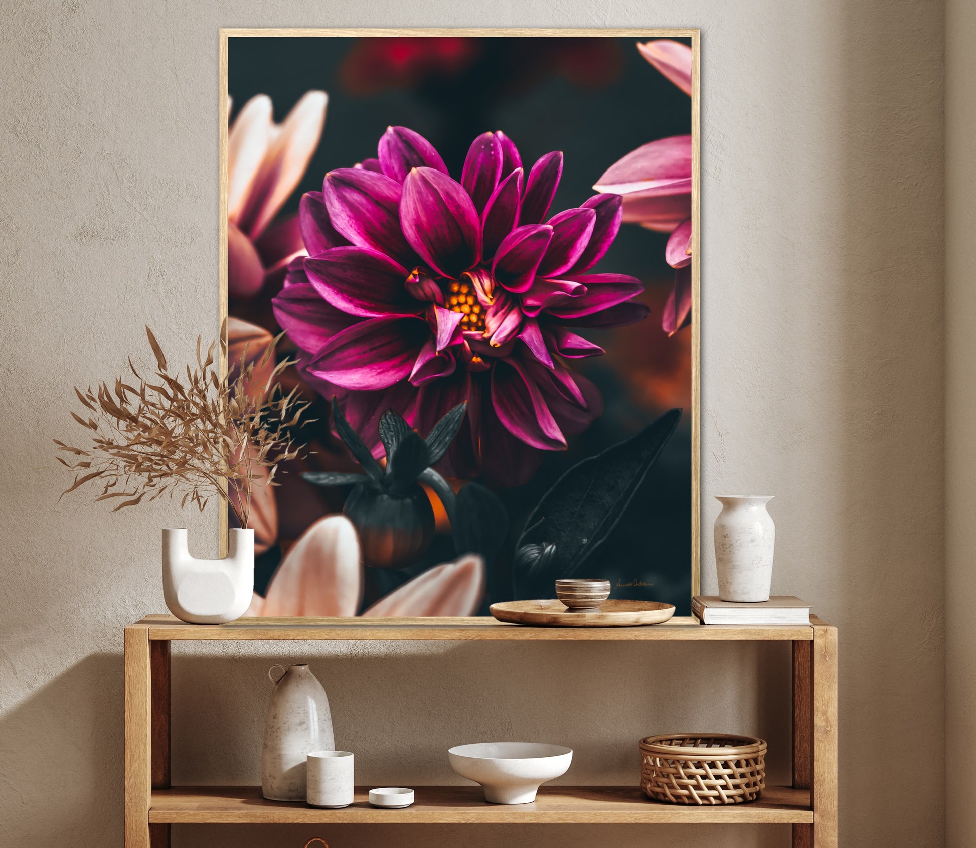 Nydelig vakker lilla Dahlia blomst med lysere blomster på kanten rundt. Få glede og sommer på veggen med dette vakre motivet.